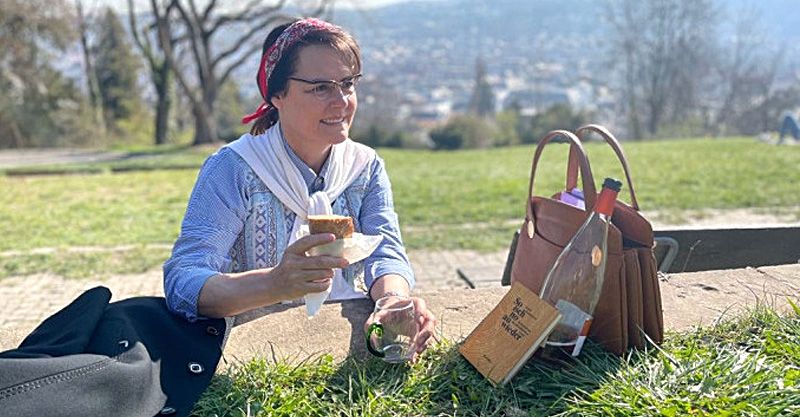 Endlich mal fünf grade sein lassen – obwohl es ja die ein oder andere Ecke gibt, an denen der Besen zu schwingen wäre! Ein kurzer Blick zum Schwabtunnel, bevor Erna den Weg über die Straße des schwäbischen Dichter und Denkers, den Sie doch so sehr verehrt, zum Feierabendwein einschlägt. Ein „Zehntele“ oder auch zwei – was für ein Genuss!